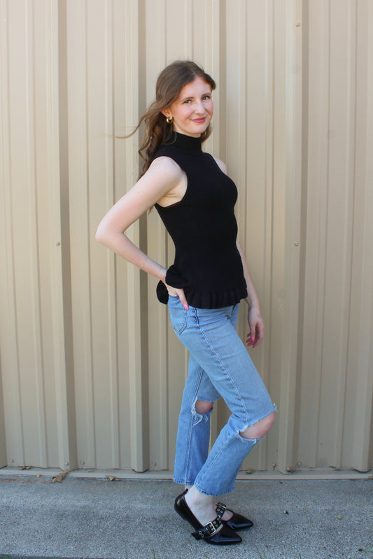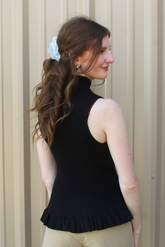 Girl On A Mission Sweater Tank- Black